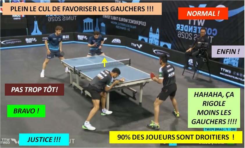 Règlement ITTF : à partir du 1er septembre 2026, changement majeur, avec, en double, une permutation : le service devra avoir son premier rebond dans le 1er carré de service à gauche et le second, dans la diagonale opposée.